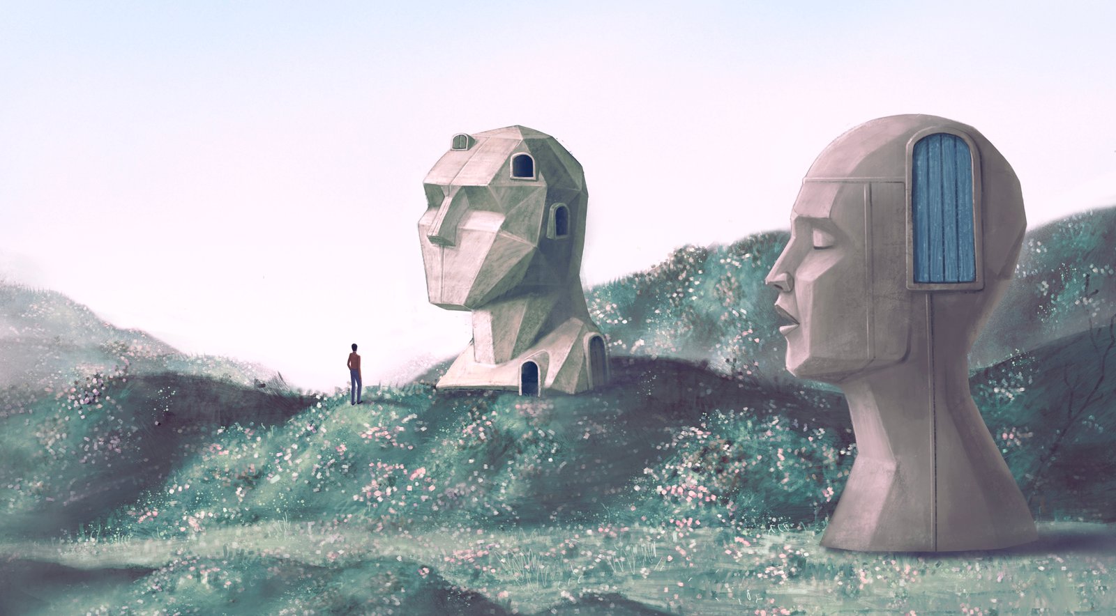 توجس الناس خيفة وأصابتهم سكتة الفزع والتأمل لخوف من المجهول القادم. توزع الرجال ذوو البشوت السود (مع الاعتذار لفيلم هوليود رجال في البدل السوداء) وأخذوا يذرعون الأرض، ويتحركوز ويحفرون ويبنون وضح الناس. وضع المكان. ولكن تحركت الحياة.. وضاع الركود. ولم تعد الأشياء ثابتة.. صارت الأشجار تثمر أكثر.. وصارت الأحداث متعاقبة شيقة.. وبدأت العقول تعمل ومعها العضلات. تشجع الناس وسألوا هذه الكائنات واختلفوا بينهم فئة قالت كائنات منتجة ، وفئة قالت كائنات جشعة.. وكادوا يقتلون في اختلافهم من أنتم ؟ قالوا: نحن رجال.. من كوكب اسمه أعمال وتمتم الناس رجال كوكب أعمال رجال أعمال!!..